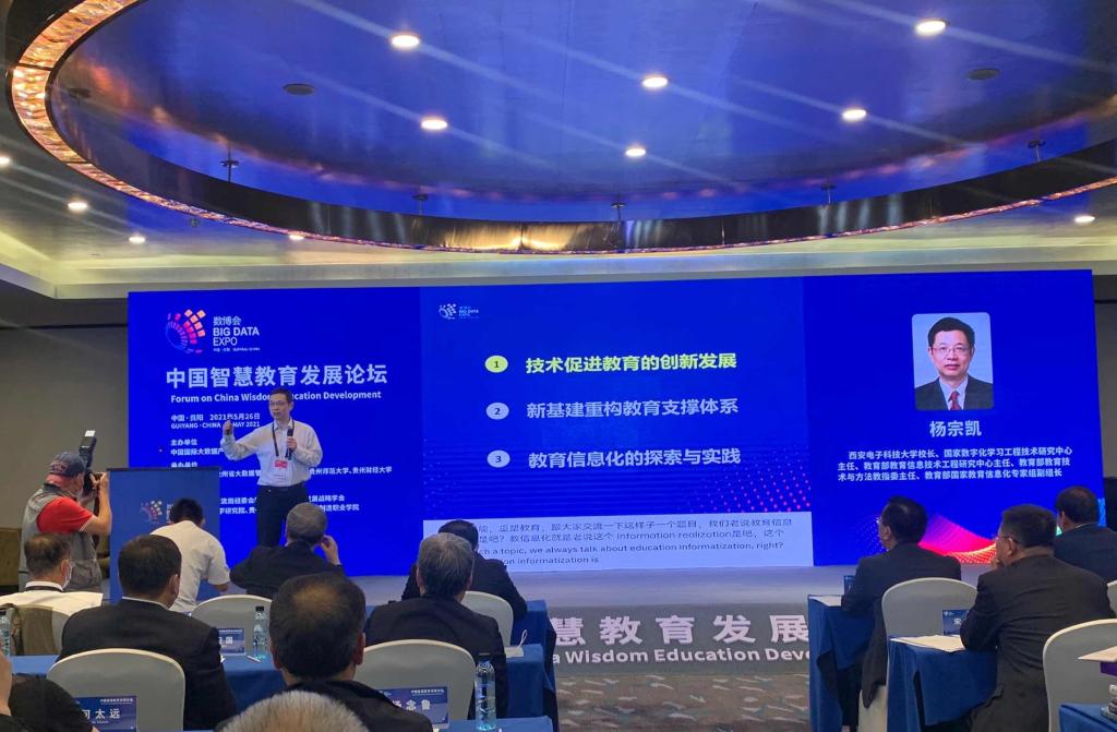 2021年5月26日,中国智慧教育发展论坛在贵州省贵阳市国际生态会议中心盛大召开,贵州省委常委、省委宣传部部长、省委教育工委书记卢雍政,教育部科学技术与信息化司司长雷朝滋应邀为此论坛做领导发言。教育部教育信息化战略研究基地(华中)主任杨宗凯校长应邀为此次论坛做主题演讲,基地常务副主任吴砥教授等一行,应邀参加了此次论坛及中国国际大数据产业博览会。