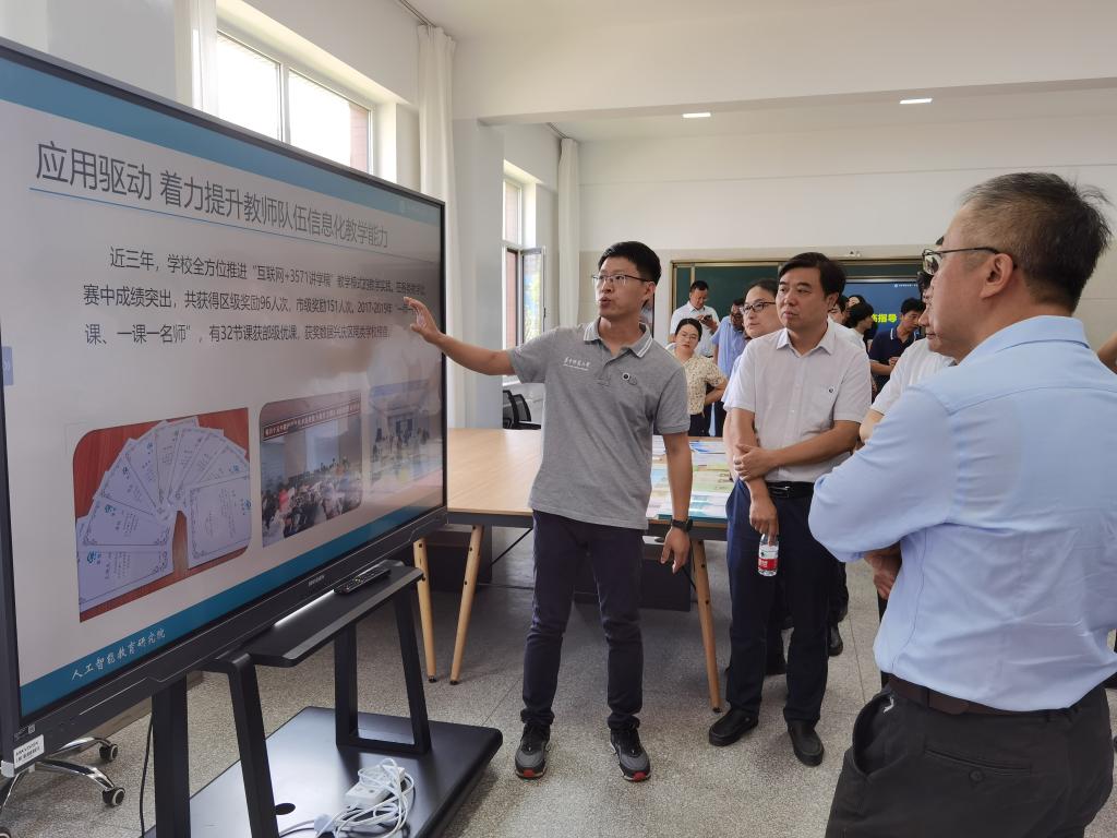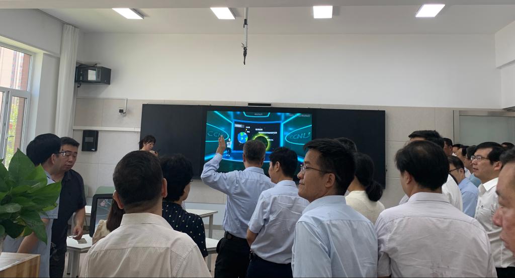 会议期间,各位领导参观了研究院。基地的各研究小组分别就在宁夏开展的研究工作与成果进行了介绍。涵盖教师信息素养测评与提升、“三个课堂”与义务教育优质均衡发展、虚拟现实与教学融合、“互联网+”课堂教学模式创新、教育信息化规划与评估、人工智能教育社会实验以及教育大数据标准与服务规划等诸多研究方向。