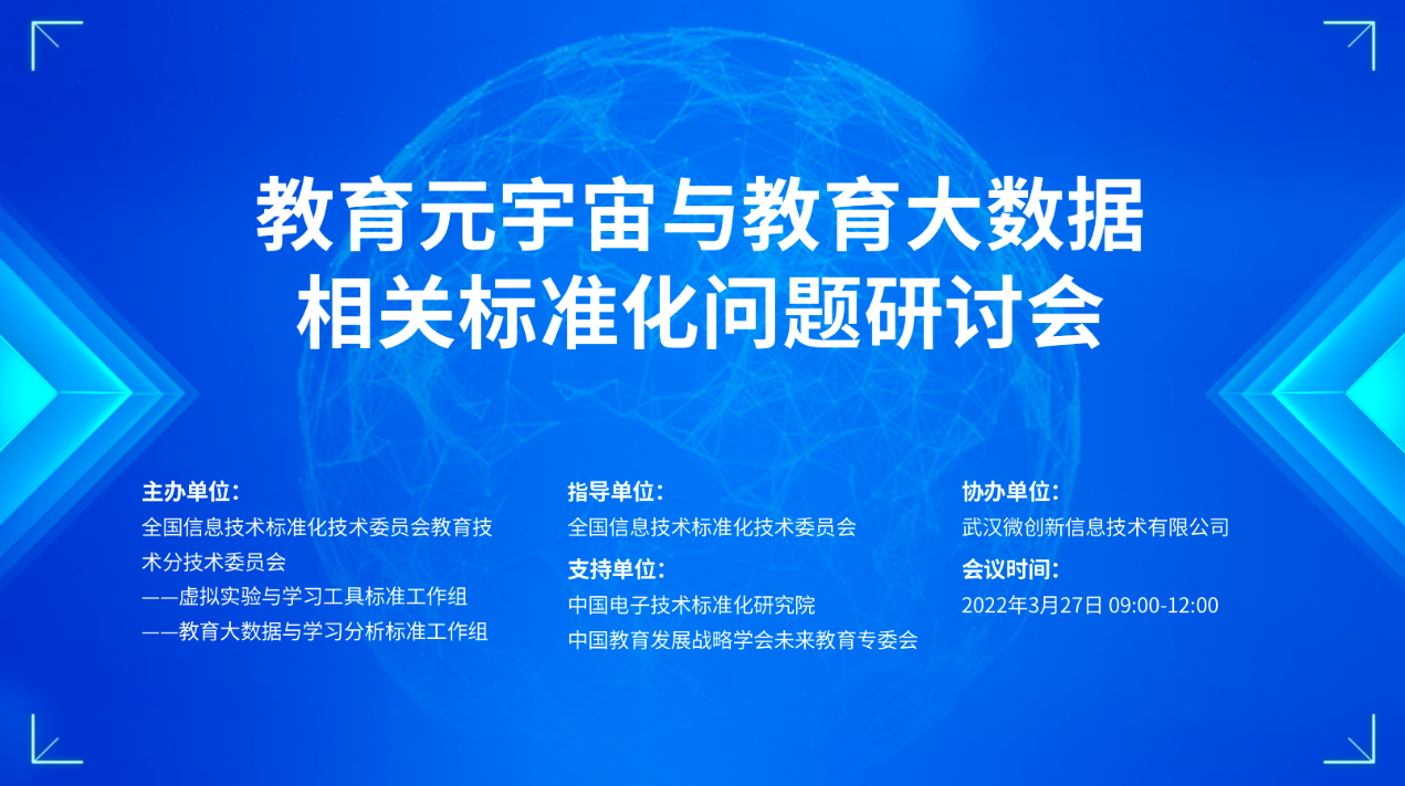 2022年3月27日,由全国信息技术标准化技术委员会教育技术分技术委员会“虚拟实验与学习工具标准工作组”和“教育大数据与学习分析标准工作组”共同举办的“教育元宇宙与教育大数据相关标准化问题研讨会”顺利线上召开。本次标准研讨会由标准工作组召集人、华中师范大学人工智能教育学部吴砥教授组织,来自全国信息技术标准化技术委员会、华东师范大学、清华大学、北京邮电大学、华中师范大学等业内知名专家学者,以及微创新、新华三、网龙、腾讯等企业代表,围绕教育元宇宙和教育大数据在发展应用中出现的相关问题,从标准化视角进行了探讨。本次标准研讨会的顺利召开得到了中国电子技术标准化研究院和中国教育发展战略学会未来教育专委会的大力支持。