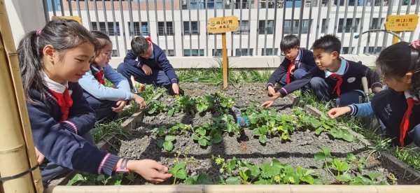 校园里的一片种植田成了“试验田”。这片面积达1.83亩的“智农苑”内,以班级为单位,划分为不同的种植区域,由每个班级负责打造属于自己的农场。挖坑、埋土、浇水,新学期伊始,温州大学附属第一实验小学四(4)班的学生在教学楼顶种下一株株草莓苗。