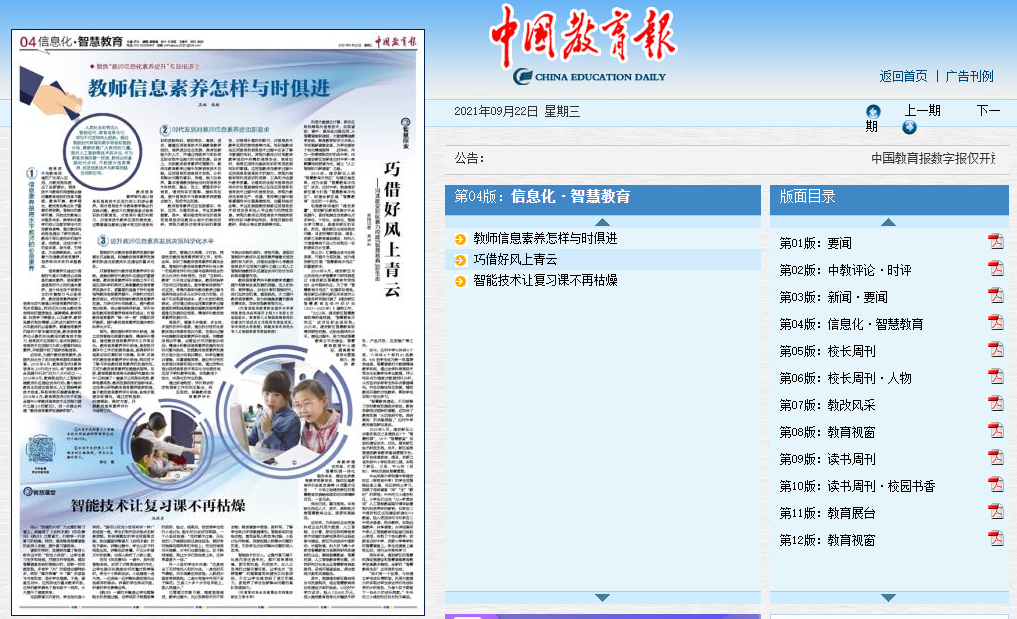 文章摘要:“人类社会即将迈入智能时代,教育信息化已成为不可逆转的大趋势。推动智能时代教育的数字转型和智能升级,需要依靠广大教师的力量。面对人工智能等技术的冲击,作为教育发展的第一资源,教师必须紧跟时代步伐,不断提升信息素养,促进信息技术与教育的融合创新应用。”文章从“信息素养是高水平教师的必备素养”、“时代发展对教师信息素养提出新要求”、“提高教师信息素养发展决策科学化水平”等三个方面,阐释了新时代背景下,教师提高自身信息素养的重要性、具体内容以及实施方案。“教师信息素养关乎教育教学质量的提升和教育改革发展的进程。”在如今人工智能日益发展的时代,我们除了享受它们所带的益处之外,也应抓住机遇、直面挑战,大力提升教师自身的信息素养,助力构建高质量的教育支撑体系,加快实现教育现代化。