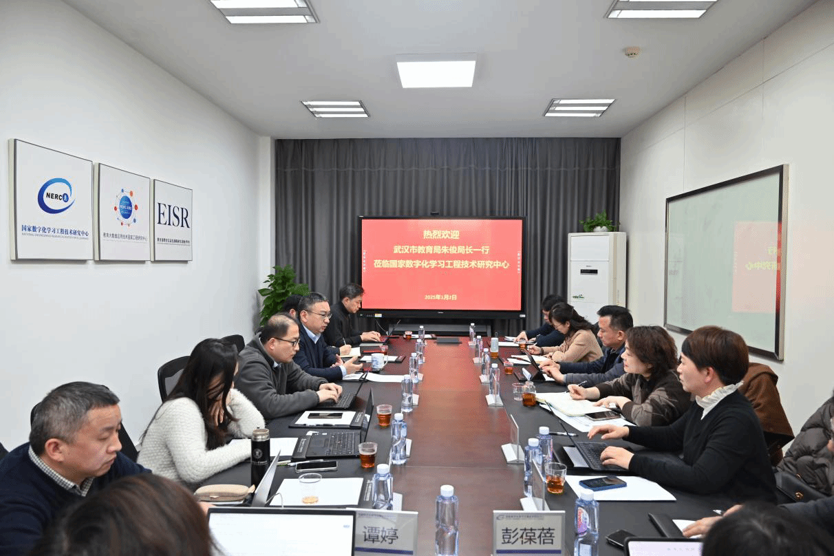 2025年1月2日,武汉市教育局副局长朱俊、武汉市教育局基教处副处长李曼丽、武汉市教科院副院长谢琼、武汉市教育局教育数字化转型工作专班负责人蔡葵、武汉市教育局基教处一级主任科员史华良等一行莅临国家数字化学习工程技术研究中心座谈交流。基地吴砥老师、徐建老师、钟正老师、张黛希老师参加了此次会议。