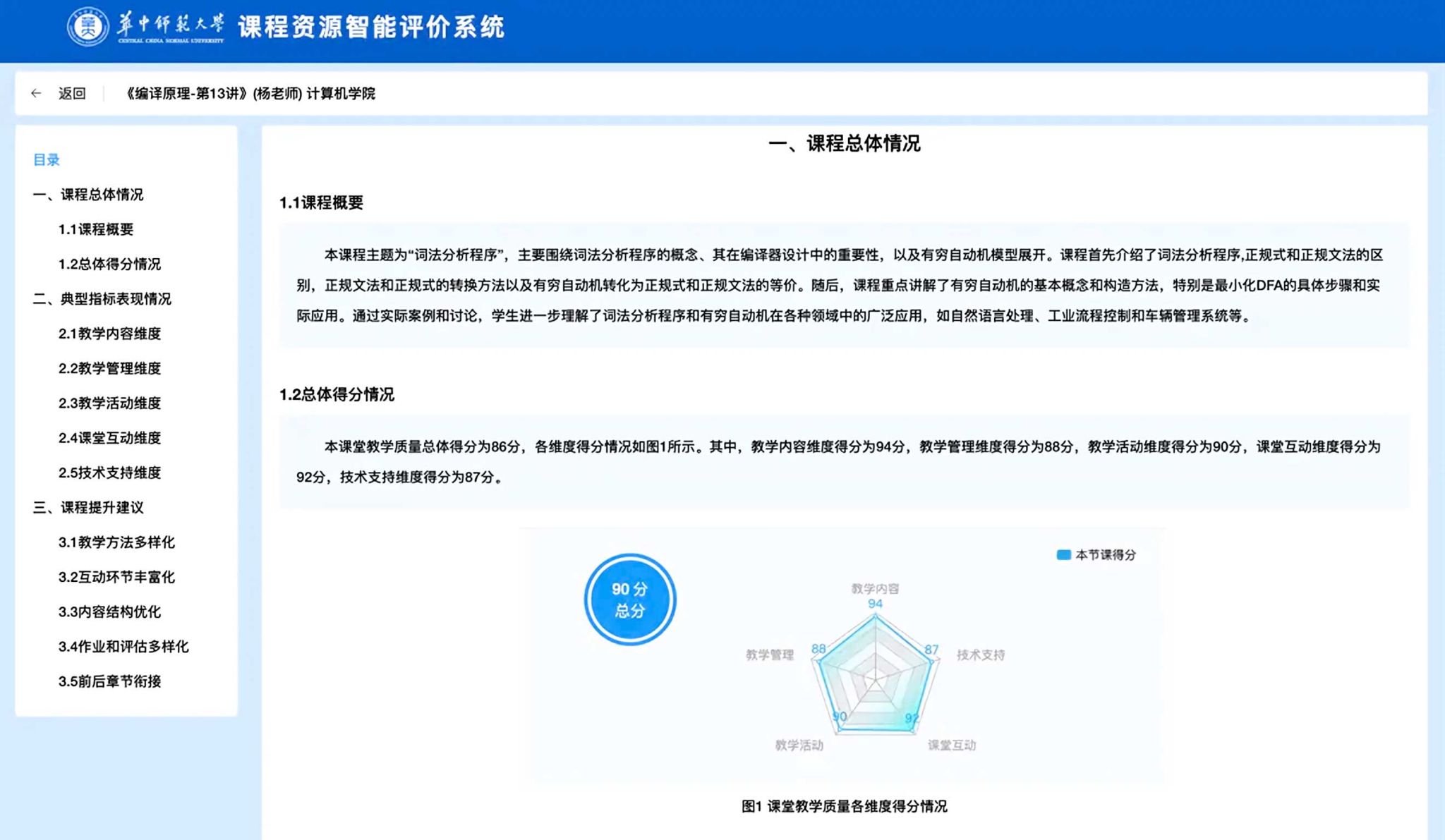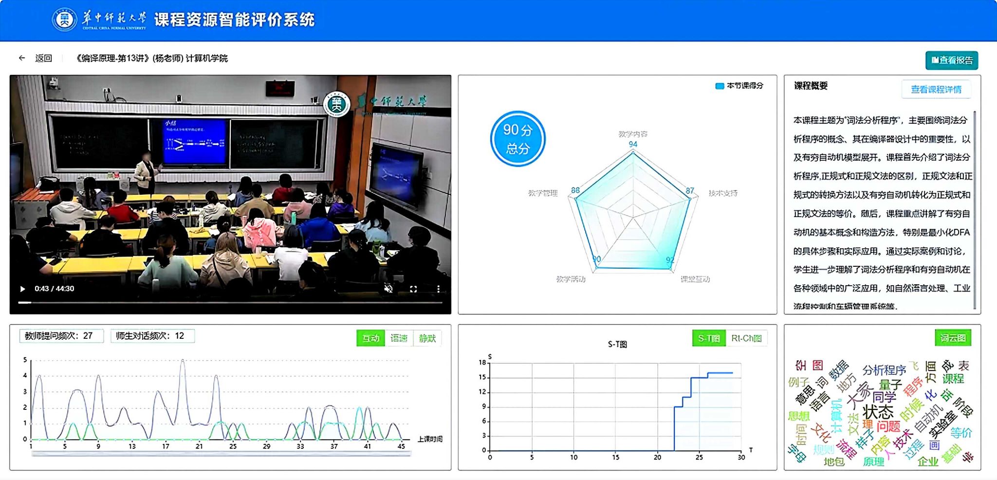 研究团队在深入分析数字课程资源质量评价关键要素的基础上,构建了涵盖教学内容、教学管理、教学活动、课堂互动和技术支持等方面的评价框架,并开发了基于多模态数据分析与大模型技术的数字课程资源智能评价系统,为实现课程资源的全面感知与智能评估提供了有力支撑。