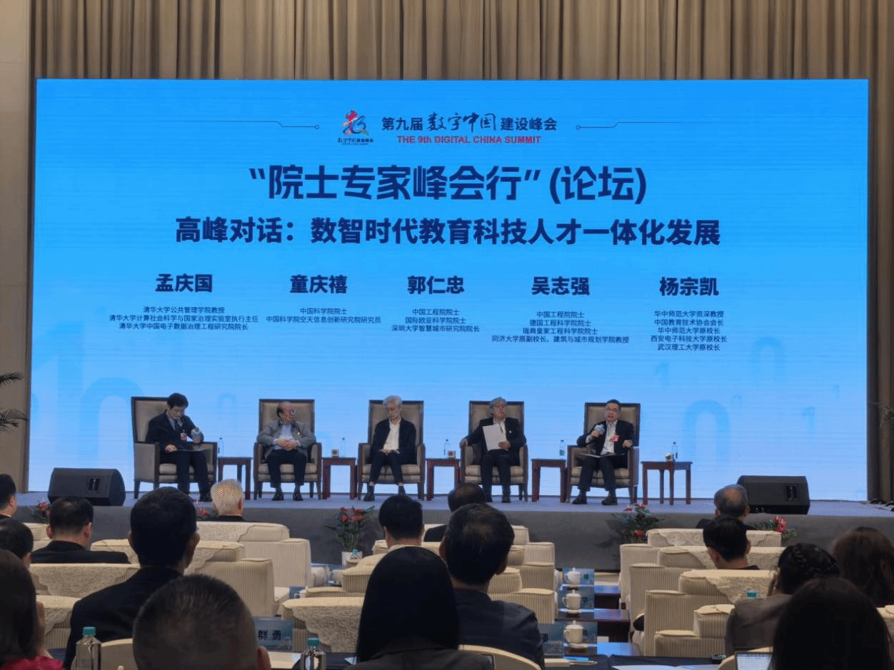 4月28日-30日,第九届数字中国建设峰会在福州举办。本届峰会以加快数智技术创新发展,深入推进数字中国建设为主题,汇聚政产学研各界精英,共商数字中国建设发展大计。基地主任杨宗凯教授受邀出席峰会,全程参加峰会开幕式、数字中国研究院(福建)第八届专家委员会闭门会议及第九届“院士专家峰会行”论坛,与多位院士专家围绕数智时代教育科技人才一体化发展核心议题深入交流,聚焦教育数字化关键突破口、现实挑战与实践路径开展高端研讨,为智能时代教育变革与数字中国高质量建设贡献专业智慧与前沿洞见。