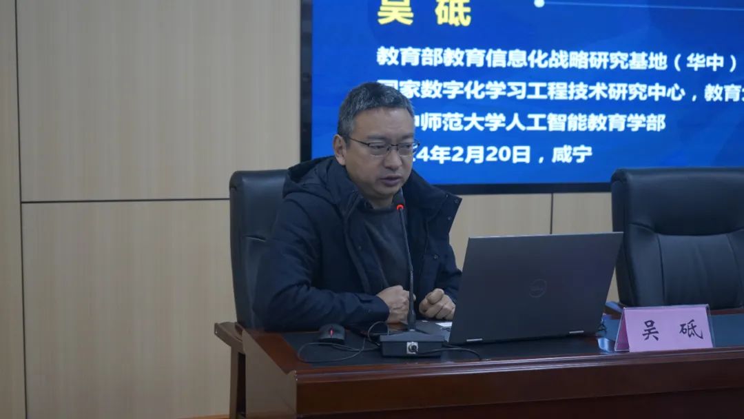 市教育局副局长魏祖健作培训小结,他指出推进教育数字化是建设教育强国的重要抓手,是实现教育强省目标的必然选择,也是实现咸宁教育弯道超越,弘扬后发优势的现实需求。吴教授的报告主题鲜明、内容丰富、生动翔实、贴近实际,既有理论高度,又有实践深度,也让我们进一步统一了思想、凝聚了共识、坚定了信心、明确了方向、清晰了路径。干部职工纷纷表示,听了吴教授的报告之后深受教育、深受启发,也开阔了眼界,下一步将结合本部门职责和工作实际,提出推进落实教育数字化的工作举措,为全市教育数字化发展贡献智慧和力量。