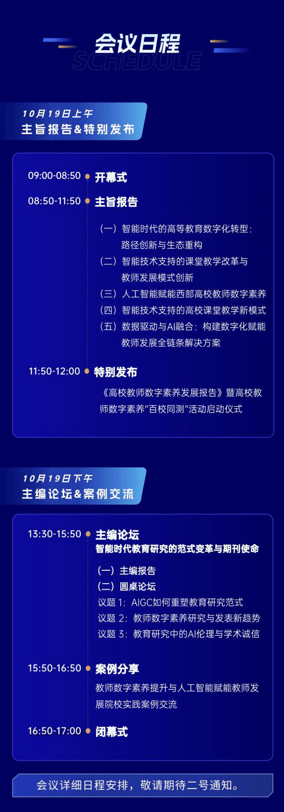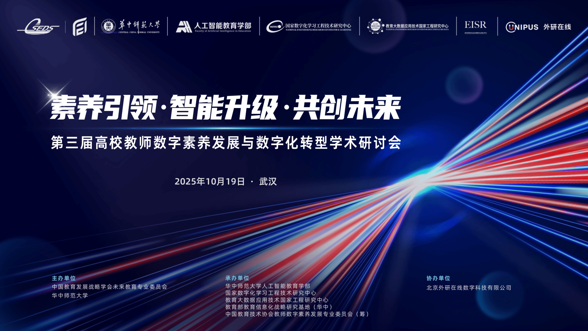 为进一步推动教师队伍数字化建设,持续探索人工智能赋能教师发展的路径与实践,中国教育发展战略学会未来教育专业委员会联合华中师范大学,将于2025年10月18-19日举办“素养引领·智能升级·共创未来——第三届高校教师数字素养与数字化转型学术论坛”。本届论坛由中国教育发展战略学会未来教育专业委员会与华中师范大学联合主办,由华中师范大学人工智能教育学部、国家数字化学习工程技术研究中心、教育大数据应用技术国家工程研究中心、教育部教育信息化战略研究基地(华中)、中国教育技术协会教师数字素养发展专业委员会(筹)承办,由北京外研在线数字科技有限公司协办。