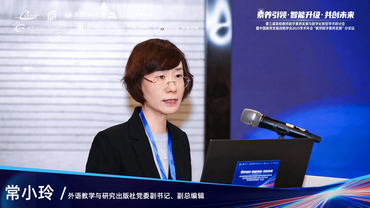 华中师范大学副校长李鸿飞以教育大模型构建与教学创新为题,介绍AI赋能教师全周期发展的实践;联合国教科文组织苗逢春通过视频解读《教师人工智能能力框架》五大维度;北京外国语大学李莉文分享AI重塑外语人才培养与教师素养提升路径;华中师范大学刘清堂、武汉理工大学刘奕、外研社李会钦分别从精准研修、课程建设、发展范式等角度提出创新方案。本环节由吴砥教授与外研在线蒋亦雷共同主持。